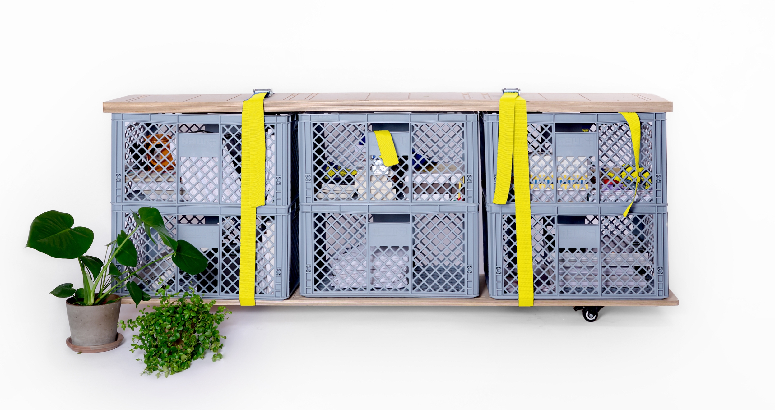 Unsere CNC-gefrästen Holzplatten werden „made to order“ von einem mittelständischen Unternehmen in Brandenburg bei Berlin gefertigt, Spanngurte und Metallschienen sind „Made in Berlin“. Um unnötige Transportwege und Verpackungsmüll zu vermeiden, werden diese Komponenten gemeinsam mit den Rollen als kompaktes, CO-2 neutrales Paket verschickt. Der Versand der Euro-Boxen erfolgt direkt vom Hersteller aus Süddeutschland.